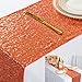 Table Runner: 1pc 14x108-inch orange sequin table runner. This rectangle table cover can fit a 6ft/8ft rectangular table or round table well. This sparkly wedding table runner is great for event table decorations.