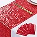 Table Runners: 5pc 12x72-inch red sequin table runner. This rectangle table cover can fit a 6ft rectangular table or round table well. This sparkly table cover is great for event table decorations.