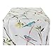 This table runner features a lovely floral print with small finches sitting on the flowers and ivory background.