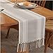 🎯【Boho Table Runners 72 Inches Long & 12inch width with Tassels】 : Capable for 4-6 seats , the tassel edges are sewn together make Farmhouse Table Runner doesn't get tangled in transit, please pull the stitching out, so the tassels able to hang freely, perfect for displaying on wooden dining tables, kitchen tables, wedding tables, coffee tables, adding that unique rustic and warm look to your modern farmhouse decor.