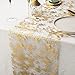 ❤【Elegant DESIGN】: 11in W x 5.5yd L (11''x197''). Exquisite edges, not easily loose thread. A chic glitter organza table runner with gold metallic foiled print add everyday luxury to your table.