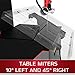 MITER GAUGE PIVOTS 60° LEFT/RIGHT: Allows easy adjustment for a full range of cuts.