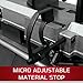 REPEATABILITY: Micro-adjustable tool-less material stop for accurate set-up