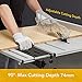 【36 Tooth Blade & Aluminum Tabletop】Coated alumium tabletop with 26" rip capacity can easily rip through larger wood material and reduce extra friction for smoother sliding. Table saw features36T carbide-tipped blade, which is designed with transparent guard and riving knife to protect you from accidental hurt and flying chips.