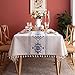 【DESIGN & OCCASIONS】: Beautiful embroidered tablecloth with tassel hem, rustic farmhouse tablecloth design, creating a vintage but elegant home decoration. Best gift for the holidays,It is a great indoor table protector for dining room,kitchen table pads, coffee table cover, as outdoor tablecloth for birthday party, wedding tablecloth,buffets,picnics,brunches,catering, restaurants,hotel,patio table and so on.