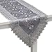 Grey Table Runner Cloth - This grey dining table runner is an elegant and versatile addition to any dining room or kitchen. The doilies embroidered onto the fabric add a touch of rustic charm, making it perfect for both formal occasions like weddings, as well as everyday use. The delicate lace design of this table runner adds a stylish and sophisticated look to any table, enhancing the overall decor of the room.