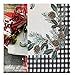 STYLING: The Lintex Aspen Red Black Plaid and Garland Bordered Christmas Tablecloth features a 4 sided red and black buffalo plaid border interlaced with garlands of evergreen and holly boughs and acorns and a center allover hollow sprig center motif pattern on a beige background.