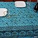 IMPECCABLE HANDMADE ELEPHANT PAISLEY FLORAL DESIGN: A stunningly beautiful 100% cotton hand-loomed tablecloth in the turquoise color background featuring Jaipur Paisley Bagroo design all over with a Good luck sign Elephant with a trunk up and an elegant border all around.