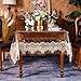 EMBROIDERY DESIGN: Tablecloth cover is printed with engineering jacquard in the center, and floral hollow design and heavy lace borders.
