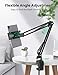 Long Arm: 2-stage sturdy and adjustable arm of this overhead phone mount ensures durability and easy stability, providing more precise and stable positioning than gooseneck design without any shaking. Soft rubber pad on the base clip won't make any damage to your wooden or glass desk.