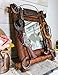 Western decor is all about spunk and spirit, bringing together the desert beauty of the southwest and all its inhabitants with rugged cowboy charm and rustic good looks. This photo frame features tasteful scrollwork patterns etched on faux tooled leather background. Each corner is bordered with turquoise western belt with silver beads. In the center is an oval shaped window for your 5"X7" photo.
