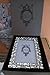 Hand-set clear European crystals, sapphire glass gems, blue cat's eye, and faux pearls in bronze metal finish. Elegant moiré silk back with easel for vertical or horizontal placement.