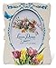 SIMPLY ELEGANT: Beautiful and classic glossy white frame with blue accents and butterfly; pink and yellow tulips across the bottom