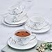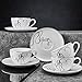SERVICE FOR 4: includes 4 cups with a 9.6-fluid ounce capacity and 4 coordinating saucers with a 6-1/2 inch diameter