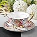 Exquisite and delicate design: High quality ceramic material, keep good use for long time. Flowering Shrubs design will be the highlight of your home decor and party. Hollow out handle matching with delicate gold leaf edge highlights the craftsmanship and taste of life. Showing a cup & saucer in rich vitality and love.