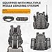 3. Tactical backpack has molle system, Plenty of mount points on the outside of tactical backpack for add-on pouches, designed to be used in combination with other equipment, you can load pockets, water bottle bag, accessory kits and other.