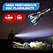 【WATERPROOF & HIGH-QUALITY MATERIALS】IPX5 waterproof & Shockproof, impact resistance. Perfect for using in the rainning, snowing or other emergency situation. This super bright flashlight is made of high-quality aviation aluminum for excellent heat dissipation.
