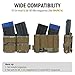 [MOLLE Compatibility] Can be attached to most tactical belts/vests/pouches with MOLLE strap on both front & back and snap button on the back of mag pouch.