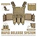RAPID RELEASE: A rapid open connector at the shoulder and waist allows instant donning and doffing. It only takes a gentle pull between the waist cord and the waist cord outward, and you are off the vest within 1 second. Suitable for combat training, field work, shooting, hiking, camping, extreme challenges, and great military fans.