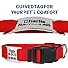 DURABLE SILICONE MATERIAL: Our personalized dog tags are made from high-quality silicone material & customized with deep permanent engraving that will not fade over time, making it a great choice if you are looking for jingle-free dog id tags. Unlike metal tags, the engraving on our silicone ID tags is permanent and won't fade away over time. Moreover, it has an enhanced silicone connection loop which prevents the tag from being snapped off your dog's collar.