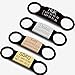 Double-sided laser-engraved thick (~1.8mm) metal tags. Choose from rose gold, gold, and silver (solid stainless steel). Available in 6 different shapes: round, bone, diamond, heart, teardrop, and military.