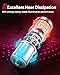 Dual Heat Dissipation: aircraft-grade aluminum heat sink with low temperature, rust resistance, bump resistance, no bulb out error, no flickering, strong light intensity, and energy saving