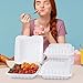 HEAVY-DUTY BAGASSE CLAMSHELL BOXES | MICROWAVE & FREEZER SAFE: Thanks to their sturdy construction, our strong and dense square disposable food containers with lids are 100% microwavable and freezer safe. This way, you can easily store any leftovers, freeze them and even microwave them without any ifs and buts. An extra convenient and practical value pack of food packaging boxes for an array of handy uses.