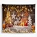 DESIGN: Golden Merry Christmas Elements Decorative Tapestry Wall Hanging Christmas Tree Reindeer Snow Stars Tapestry. 3D Stereo Effect. Vivid Colors and Clear Images. A great way to add color to your bed, ceiling, and wall.
