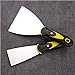 COMFORTABLE GRIP --- The filling knife set's handle is composed of soft rubber and plastic. The non-slip pattern on both sides of the plasterboard knife's ergonomic design gives a comfortable grip and reduces hand fatigue when using the putty scraper. Comes with extra safety plastic clean razor scrapers, is sharp enough to remove tenacious residue from glass and wood floors, and will not affect automobile paint, windows, wood floors, or other surfaces susceptible to scratching.