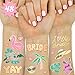 Long Lasting: our temporary tattoos have been put through rigorous party testing and are 100% guaranteed to last all day - please note that the white and pink colors in the tattoos are not metallic. Gold + rose gold are the only metallic colors :)