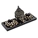 Zen Garden: Package comes with resin Buddha statue, tealight candle holder,200g decorative chipped crystal stones, incense stick holder and a black wooden tray, perfect combination to decorate your home.