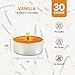 SCENTED CANDLES: Add a touch of cheer to any setting with our vanilla bean candle. Indulge your senses , reduce your stress and release an inviting and comforting aroma that will uplift anyone's mood. With its natural sweetness and refreshing fragrance, it guarantees to bring a relaxing scent to any room. Tea candles for your home!