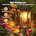 [All-Weather resistant] Upgraded IP65 Waterproof level can better cope with various complex outdoor environments. These strong garden solar lights outdoor solar-powered are made of anti-rust coated material, allows keeping lighting on rainy, stormy, frosty, snowy days, or any complex outdoor condition.