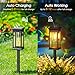 [Up to 12 hours] Equipped with 0.5W polycrystalline solar panel, high-performance batteries and long-life LED lights, Our 2023 Upgraded solar pathway lights convert solar energy into electricity during a sunny day via absorb the sun power and work for up to 12 hours at night, giving off soft, warm illumination. They automatically turn on in the evening and off at dawn.