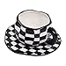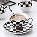 TIMELESS&SOPHISTICATED DESIGN:The checker pattern, inspired by checkerboard, gives a retro and elegant feeling that never goes out of date. Complementing with dark gold trim across the checker, the porcelain cup set is a gorgeous decor to your kitchen and great server for your guests.