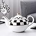 TIMELESS&SOPHISTICATED DESIGN:The checker pattern, inspired by checkerboard, gives a retro and elegant feeling that never goes out of date. Complementing with dark gold trim across the checker, the porcelain tea set is a gorgeous decor to your kitchen and great server for your guests.