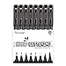 The perfect pen for technical drawing, sketching, graphic design, water coloring or inking comics, black ink in a package of 8 with 0.05mm, 0.1mm, 0.2mm, 0.3mm, 0.4mm, 0.5mm, and 0.8mm nibs for a range of different line-widths in one all inclusive package