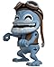 YOUTOOZ MEME FIGURES COLLECTION: Youtooz Crazy Frog stands mid-dance, hands out in front of him, designed in his iconic blue skin with a white belly, dark grey spots across his hips and shoulders. He has been sculpted with original black Youtooz eyes and flashes a large grin, showing off his teeth and his one missing tooth. On his head he wears his white helmet and his brown motorcycle goggles. He wears a brown vest.