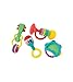 Developmental activity: toys encourage reaching, shaking and grabbing for eye-tracking and hand-eye development; when babies mouth they learn about texture, taste and temperature while building muscles they will use later in life for eating and speaking