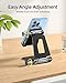 【Super Sturdy & Non-Slip Silicone Pad】 - This desktop phone stand adopts durable aluminum with a strong solid construction, assuring your phone stay firmly in place. The silicone covered pads and metal weighted anti-slip base well protect your devices from scratches and sliding, easily tap the screen without worrying the phone will tip over or fall off.