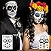🎃Package include: You will receive 12 sheets Day of the Dead Temporary Tattoos. As a prop for Halloween party, the bright red roses, petal eye circles, green leaves, skeleton and more can really help to create special and memorable moments.