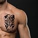 LONG LASTING TATTOOS TEMPORARY- Black large temporary tattoos for men waterproof and lasts long body from 4-7 days. Remove clear film, Apply tattoo on clean dry skin, dab tattoo with damp paper towel, remove paper, let tattoo dry. It's that simple!