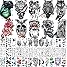PREMIUM QUALITY- The fake tattoos will last several days. They are close to the real tattoo, you can choose the pattern you like to paste on your body, they can show your personality and express your ideas. These flower rose masked gangster lion wolf Snake tiger death demon skull black tattoos. Perfect for men, women, girls, boys of all ages to get noticed wherever you are.