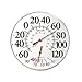 Large Outdoor Thermometer Decorative: 12 inch diameter round wall thermometer hygrometer accurately measures temperatures from -60 to 140 degrees Fahrenheit (-50 to 60 degrees Celsius) and relative humidity levels from 20 to 90% with the dial's bold black pointers, the round outdoor thermometer accommodates all general temperature and humidity changes