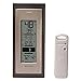Tracks indoor and outdoor temperature (degrees Fahrenheit and Celsius) with trend arrow