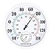 Indoor Outdoor Thermometer: 10 inch wall thermometer and hygrometer can be placed indoors or outdoors, including greenhouses, warehouse, baby rooms, offices, laboratories, museum, balconies, garden, patio, etc. And its compact and stylish appearance can definitely decorate your room. Plastic frame and cover will not rust like metal ones