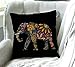 A colorful floral african elephant is printed on the front side of a 18x18 pillow cases