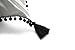 Design: Minimalist luxury White cotton with textured hand tufted Grey fringe trims in an oversized chevron pattern.