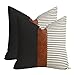 Trendy Design--Vertical three piece fine line cognac brown faux leather and linen.The leather accent stripe on this stylish decorative farmhouse throw pillow covers adds an element of class to the stark, a stylish blend of modern and classic