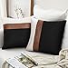 √DURABLE MATERIAL: These decorative pillow covers are made of high quality faux leather and cotton linen blend fabric, comfortable and super great touch.Hidden zipper sewed with neat stitches, works smoothly. Reinforced seams avoid ripping or fraying, providing you durable using experience.